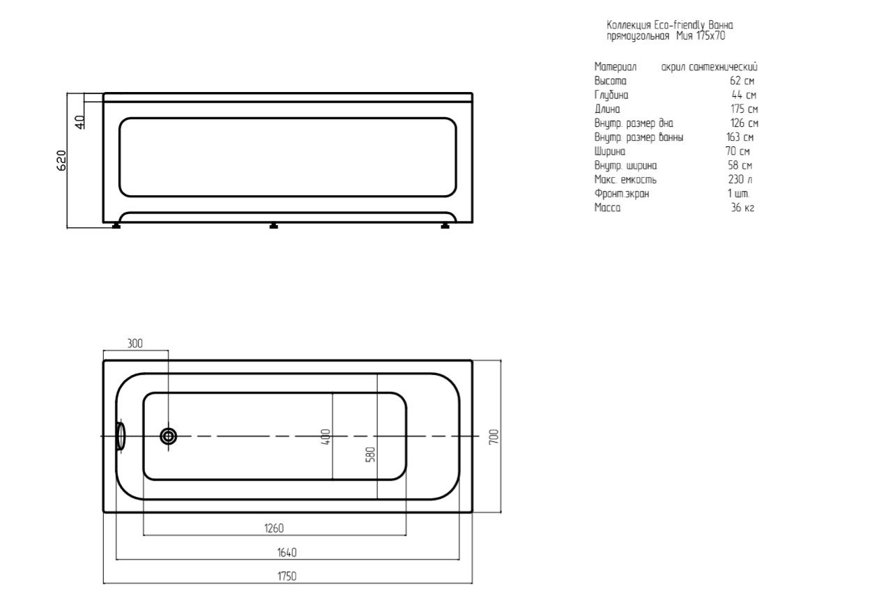 Акриловая ванна АКВАТЕК Мия EFVA175 175x70 смВанна изготовлены из сантехнического акрила ALTUGLAS.Усиление дна по всему периметру из ДСП.Слив-перелив в комплект не входит.Индивидуальная упаковка для ванны (пузырьковая пленка, картонные уголки, стрейч)Индивидуальная упаковка для экрана (пузырьковая пленка, картонные уголки)Каркас,слив-перелив,фронтальная панель приобретаеться отдельно.