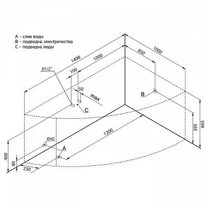 - Размер: 150x100x72,4 см. Глубина: 50 см. Объем: 305 л.