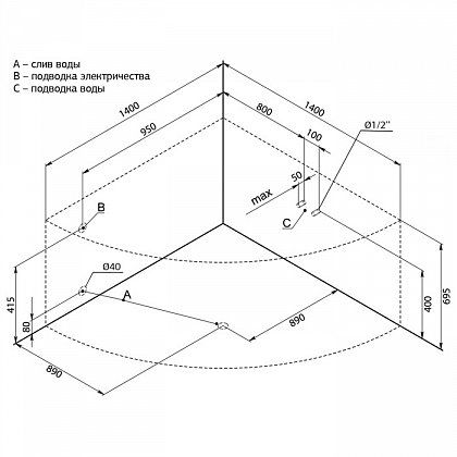 - Размер: 140x140x72,6 см. Глубина: 56 см. Объем: 460 л.