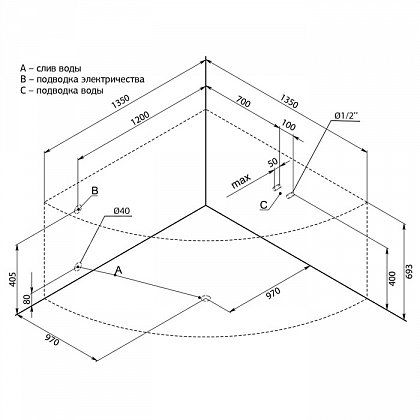 - Размер: 135x135x61 см. Глубина: 46,5 см. Объем: 260 л.