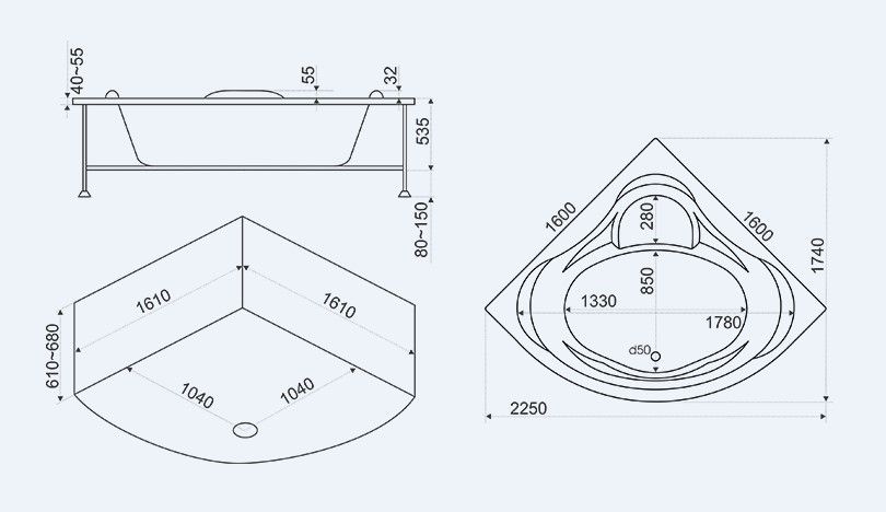 - Размеры: 1600 х 1600 мм