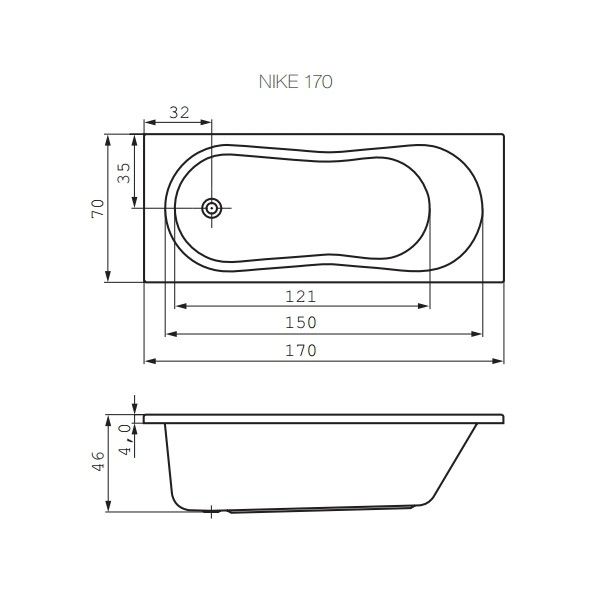 Акриловая ванна Cersanit NIKE 170х70 купить