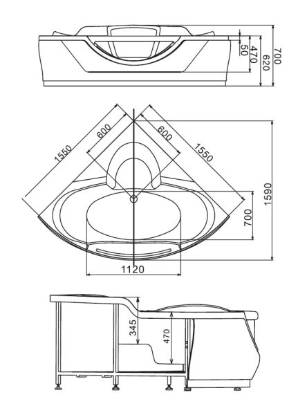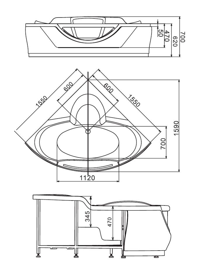 Акриловая ванна Gemy G9025 II B 155x155x70 купить