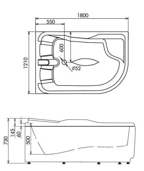 Акриловая ванна Gemy G9083 B L 180x122x72 купить