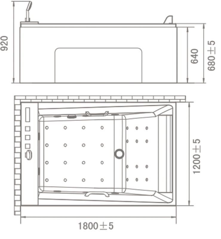 Современные системы гидромассажа и аэромассажа с регулируемым подмесом воздуха для выбора интенсивности массажного потока: 8 больших и 12 малых форсунок для гидромассажа, 16 форсунок для аэромассажа;