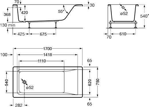 - Стандартные размеры, см:170x75