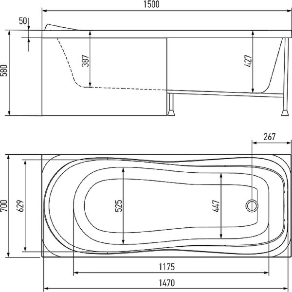 - Стандартные размеры, см:150x70