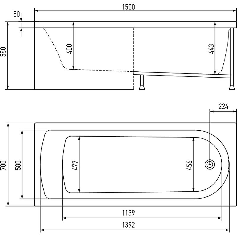 - Стандартные размеры, см:150x70