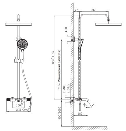 - Размер верхнего душа, см:32