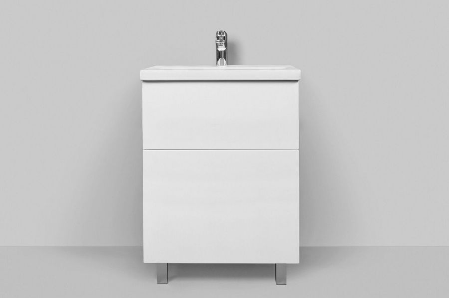 Компактное дизайнерское решение: узкая база с глубокими ящиками идеально впишется в санузел любого размера без ущерба для вместительности
