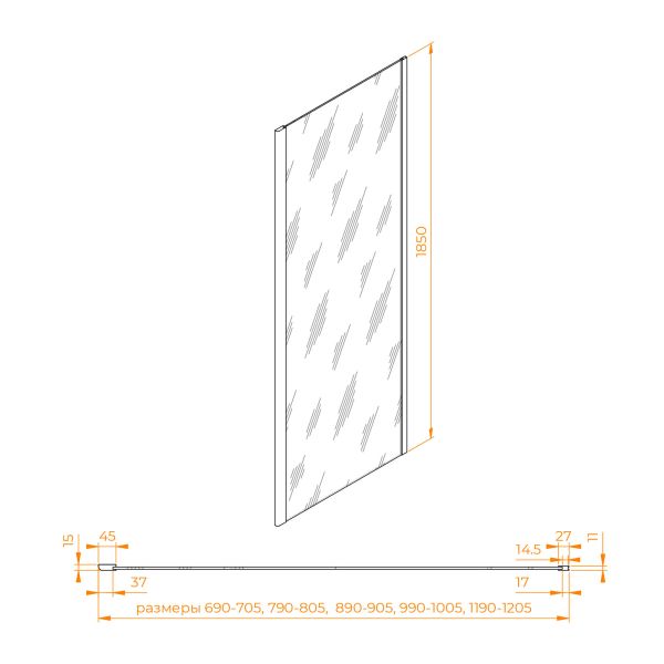 Комплектуется с моделями высотой 1850 мм и цветом профиля «чёрный». Подходит к моделям PA-02 / CL-14
