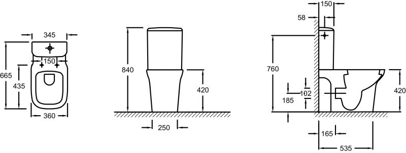 - Прилегание унитаза к стене:вплотную