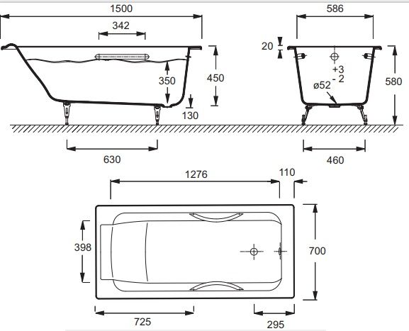 Чугунная ванна Jacob Delafon PARALLEL E2949-00 с отверстиями для ручек 150x70 Чугунная ванна Jacob Delafon PARALLEL E2949-00 с отверстиями для ручек 150x70 Казань 97321.02 {old_price} Jacob Delafon