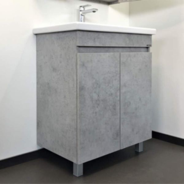 Тумба Comfortу Осло-70НД с раковиной Como 70, бетон светлый, 00-00006117Напольная тумба-умывальник с двумя распашными дверцами. Створки оборудованы петлями с механизмами плавного закрывания. Корпус и фасады из влагостойкого ЛДСП с декором "бетон светлый". Тумба укомплектована керамической раковиной, двумя ножками и подготовлена к подключению коммуникаций из стены и из пола.Основные характеристики:Монтаж: напольный