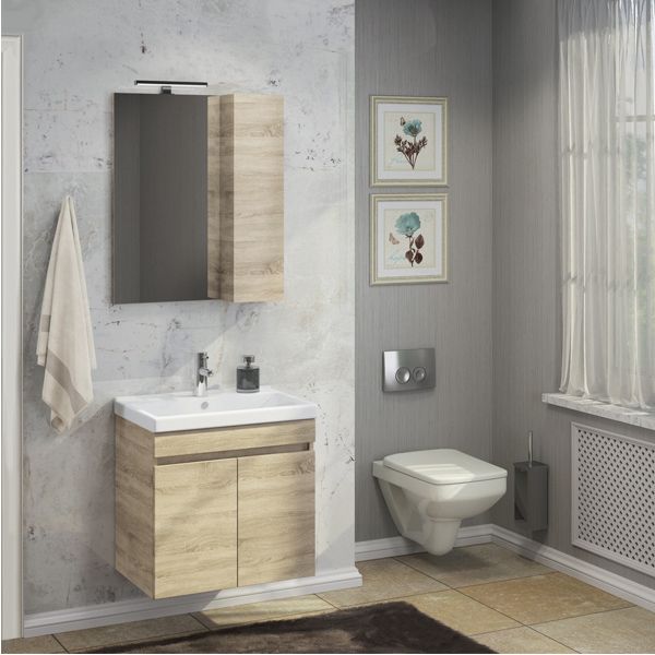 Название: Зеркало шкаф Артикул: Тромсе 60 Варианты цвета корпуса и фасада: Дуб Сонома Материал: влагостойкое ЛДСП Габариты (ШхВхГ): 600*750*150 мм Зеркальное высококачественное полотно с амальгамой на основе серебра. Створка шкафа оснащена петлями с функцией плавного закрывания, внутри две горизонтальные полки. Зеркало-шкаф универсальное, может быть подвешено в правом и левом исполнении