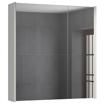 Название: Зеркало шкаф Артикул: Женева 75 Варианты цвета корпуса: Белый глянец Материал корпуса: влагостойкое МДФ Габариты (ШхВхГ): 750*800*160 мм Зеркальное высококачественное полотно с амальгамой на основе серебра. Две зеркальные створки оснащены петлями с плавным закрыванием. За малой дверцей одна полка, за большой - две горизонтальные полки.