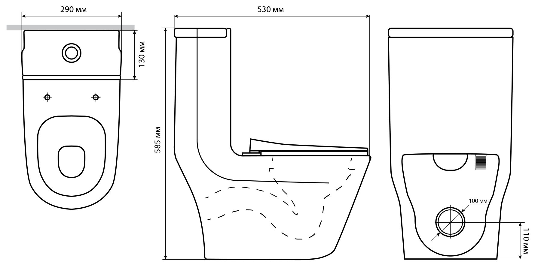 - Укороченный унитаз:нет