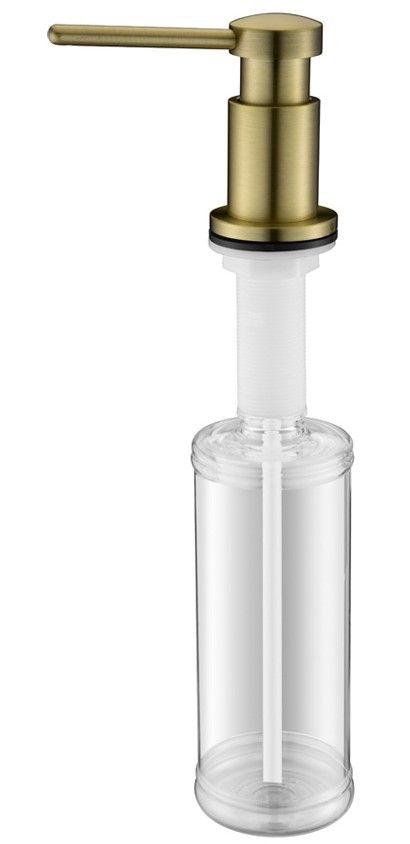Дозатор для кухни и ванной, артикул D005-BRДозатор для кухни или ванной, встраиваемый, объемом 350 мл, матовая поверхность, изготовлен из латуни и пластика.