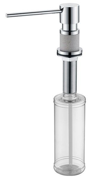 Дозатор для кухни и ванной, артикул D003-328Дозатор для кухни или ванной, встраиваемый, объемом 350 мл, матовая поверхность, изготовлен из латуни и пластика.
