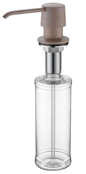 Дозатор для кухни и ванной, артикул D001-302Дозатор для кухни или ванной, встраиваемый, объемом 350 мл, матовая поверхность, изготовлен из латуни и пластика.
