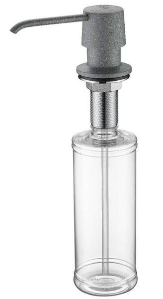 Дозатор для кухни и ванной, артикул D001-310Дозатор для кухни или ванной, встраиваемый, объемом 350 мл, матовая поверхность, изготовлен из латуни и пластика.