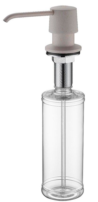 Дозатор для кухни и ванной, артикул D001-328Дозатор для кухни или ванной, встраиваемый, объемом 350 мл, матовая поверхность, изготовлен из латуни и пластика.