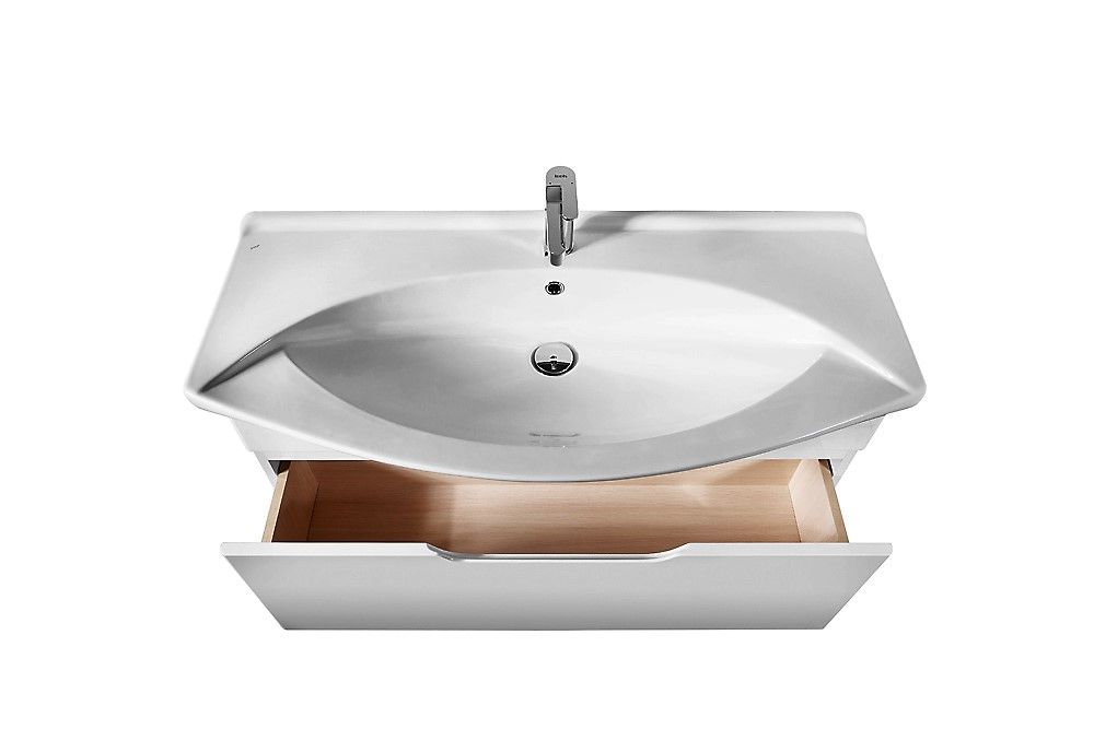 Подвесная классическая коллекция Лаконичный дизайн, глянцевая поверхность фасада, механизмы Hettich. Небольшая глубина тумбы органично впишется в любую, даже небольшую ванную комнату. Глубокий ящик