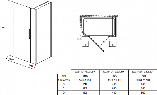 Душевая дверь Jacob Delafon CONTRA E22C170-GA 170см
