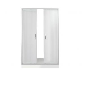 * Дверь для душа 4-х секционная раздвижная (боковые секции - неподвижные, центральные секции - раздвижные). * Укомплектована саморегулирующимися роликами. * Возможна регулировка ширины двери + 2 см от размера за счет регулировочных боковых профилей. * Cтекло 4 мм.