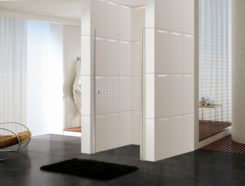 Душевая дверь в нишу Parly DE80Размер: 80х185 смРаспашная дверь образует вход комфортной ширины. Модель из прозрачного закаленного стекла (5 мм) с дизайнерским рисунком. Полотно устойчиво к случайным ударам. В случае битья, стекло рассыпается на множество мелких граней с тупыми концами.Алюминиевый полированный хромированный профиль не деформируется при высокой влажности и смене температуры. Хромированные петли и ручка устойчивы к образованию коррозии.Достоинства душевой двери:Защищает ванную комнату от брызг воды. Пол возле душевой зоны остается сухим, что снижает шансы поскользнуться после водных процедур.Душевая дверь помогает зонировать помещение на отдельные функциональные участки. Особенно это актуально для совмещенного санузла и небольших ванных комнат.Двери из стекла практичны, долговечны и гигиеничны. На стеклянной поверхности не скапливаются бактерии и грязь, полотно легко чистить.Дизайн двери дополнит стилистическую задумку оформления ванной.При правильном уходе душевая дверь долгие годы сохраняет эстетический внешний вид. Для чистки необходимо использовать мягкие губки и салфетки, специальные жидкие чистящие средства.Нельзя использовать жесткие губки и абразивные порошки, которые оставляют мелкие царапины. Как результат, в них скапливается грязь и размножаются бактерии. Поэтому важно правильно чистить стеклянные поверхности.