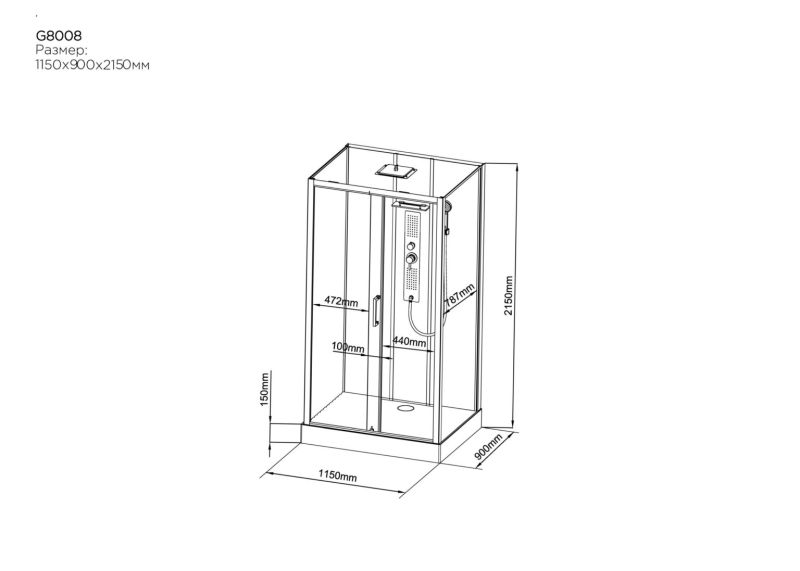 Душевая кабина Black & White Galaxy 8008000Стекло нового поколения «Super White» - белое стекло высочайшего качества, с применением в качестве исходного материала стекла Optiwhite от Pilkington (Англия).