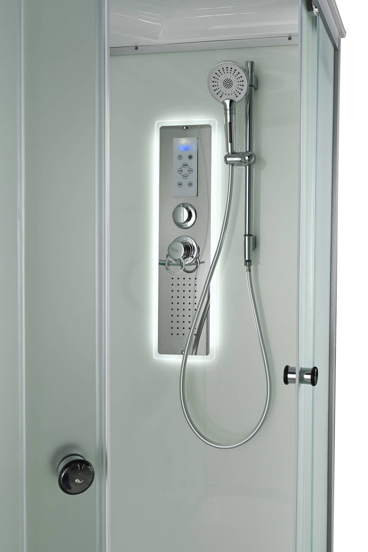 Стильная душевая кабина AvaCan D5012R LED сочетает в себе высокую функциональность, практичность и надежность. При изготовлении применяется безопасное закаленное стекло толщиной 4 мм (матовое), надежно фиксируемое алюминиевым профилем. Сборка без силикона (увеличивает срок службы), внутренняя сборка(облегчает установку и ревизию; позволяет установить в ограниченном пространстве), смеситель резьбовой (без хомутов). Съемный экран поддона (позволяет осуществлять ревизию сифона). Цвет профиля матовый хром. Двойные металлические ролики дверей (увеличивают срок службы).В комплекте : душевая штанга, полочка, тропический (верхний) душ, арома-лейка с витамином С (картридж съемный), сенсорный пульт (блютуз, радио, LED подсветка в крыше и в центральной панели, вентелятор.)