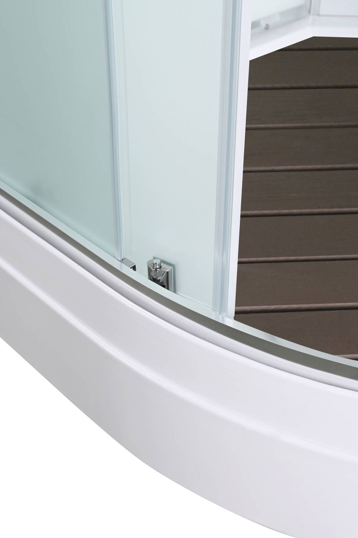 Стильная душевая кабина AvaCan EM2090 сочетает в себе высокую функциональность, практичность и надежность. При изготовлении применяется безопасное закаленное стекло толщиной 5 мм (матовое), надежно фиксируемое алюминиевым профилем. Сборка без силикона (увеличивает срок службы), внутренняя сборка(облегчает установку и ревизию; позволяет установить в ограниченном пространстве), смеситель резьбовой (без хомутов). Съемный экран поддона (позволяет осуществлять ревизию сифона). Цвет профиля хром. Двойные металлические ролики дверей (увеличивают срок службы).В комплекте : душевая штанга, две полочки , тропический (верхний) душ, арома-лейка с витамином С (картридж съемный),полимерная вставка в поддон(имитация дерева),сифон, ручки дверей из нержавейки , двойные ролики .