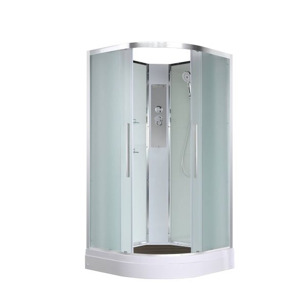 Стильная душевая кабина AvaCan EM2090N сочетает в себе высокую функциональность, практичность и надежность. При изготовлении применяется безопасное закаленное стекло толщиной 5 мм (матовое), надежно фиксируемое алюминиевым профилем. Сборка без силикона (увеличивает срок службы), внутренняя сборка(облегчает установку и ревизию; позволяет установить в ограниченном пространстве), смеситель резьбовой (без хомутов). Съемный экран поддона (позволяет осуществлять ревизию сифона). Цвет профиля хром. Двойные металлические ролики дверей (увеличивают срок службы).В комплекте : душевая штанга, две полочки , арома-лейка с витамином С (картридж съемный),полимерная вставка в поддон(имитация дерева),сифон, ручки дверей из нержавейки , двойные ролики .