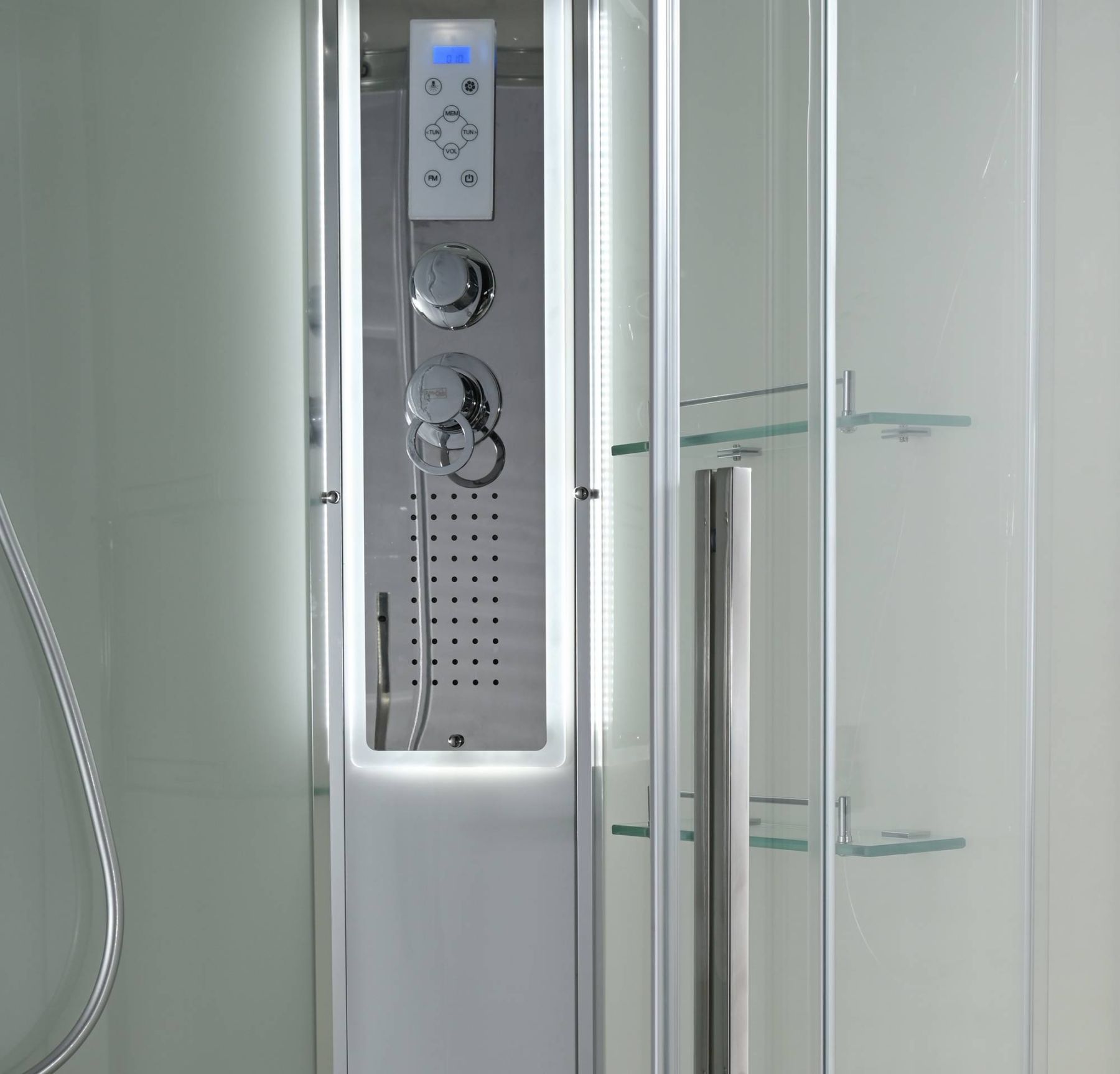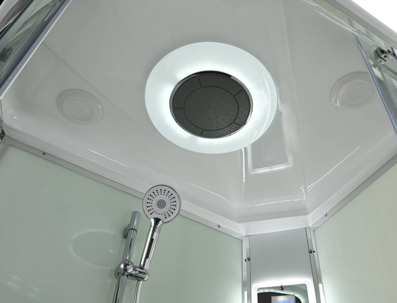 Стильная душевая кабина AvaCan EM2812RLEDT сочетает в себе высокую функциональность, практичность и надежность. При изготовлении применяется безопасное закаленное стекло толщиной 5 мм (прозрачное), надежно фиксируемое алюминиевым профилем. Сборка без силикона (увеличивает срок службы), внутренняя сборка(облегчает установку и ревизию; позволяет установить в ограниченном пространстве), смеситель резьбовой (без хомутов). Съемный экран поддона (позволяет осуществлять ревизию сифона). Цвет профиля хром. Двойные металлические ролики дверей (увеличивают срок службы).В комплекте : душевая штанга, две полочки , тропический (верхний) душ, арома-лейка с витамином С (картридж съемный),полимерная вставка в поддон(имитация дерева),сифон, ручки дверей из нержавейки , двойные ролики ,пульт сенсорный(Блютуз ,LED подсветка ,радио ,вытяжка),гидромассаж спины.