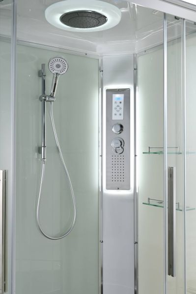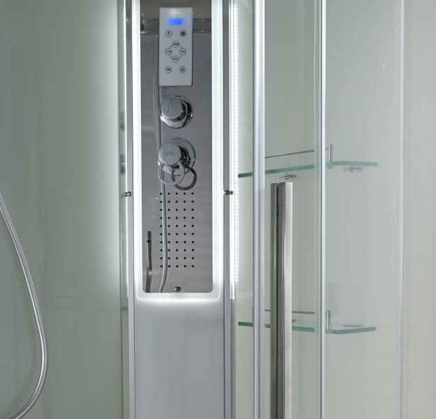 Стильная душевая кабина AvaCan EM2912RLEDT сочетает в себе высокую функциональность, практичность и надежность. При изготовлении применяется безопасное закаленное стекло толщиной 5 мм (прозрачное), надежно фиксируемое алюминиевым профилем. Сборка без силикона (увеличивает срок службы), внутренняя сборка(облегчает установку и ревизию; позволяет установить в ограниченном пространстве), смеситель резьбовой (без хомутов). Съемный экран поддона (позволяет осуществлять ревизию сифона). Цвет профиля хром. Двойные металлические ролики дверей (увеличивают срок службы).В комплекте : душевая штанга, две полочки , тропический (верхний) душ, арома-лейка с витамином С (картридж съемный),полимерная вставка в поддон(имитация дерева),сифон, ручки дверей из нержавейки , двойные ролики ,пульт сенсорный(Блютуз ,LED подсветка ,радио ,вытяжка),гидромассаж спины.