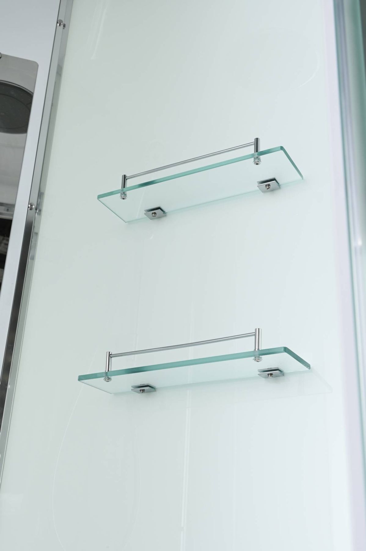 Стильная душевая кабина AvaCan сочетает в себе высокую функциональность, практичность и надежность. При изготовлении применяется безопасное закаленное стекло, надежно фиксируемое алюминиевым профилем. Профиль сделан из алюминия повышенной прочности. Сборка без силикона (увеличивает срок службы, защищает от протечек), внутренняя сборка (облегчает установку и ревизию; позволяет установить в ограниченном пространстве и обойтись без демонтажа других сантехнических приборов), смеситель резьбовой (без хомутов). Съемный экран поддона (позволяет осуществлять подключение и ревизию сифона).Двойные металлические ролики дверей (распределение нагрузки на два ролика, увеличивают срок службы). Душевая штанга(позволяет регулировать по высоте ручную лейку), ручная арома-лейка с витамином С (картридж в комплекте,есть возможность замены или удаления картриджа), полочки(из стекла, с ограничителем), сифон с гидрозатвором.