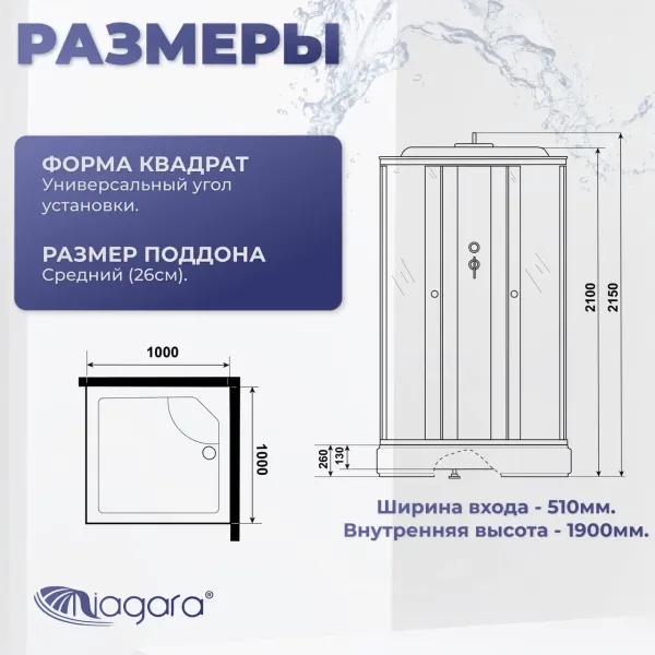 Душевая кабина Niagara Promo P100/26Q/MT 4 местаБессиликоновая душевая кабина Niagara Promo P100/26Q/MT