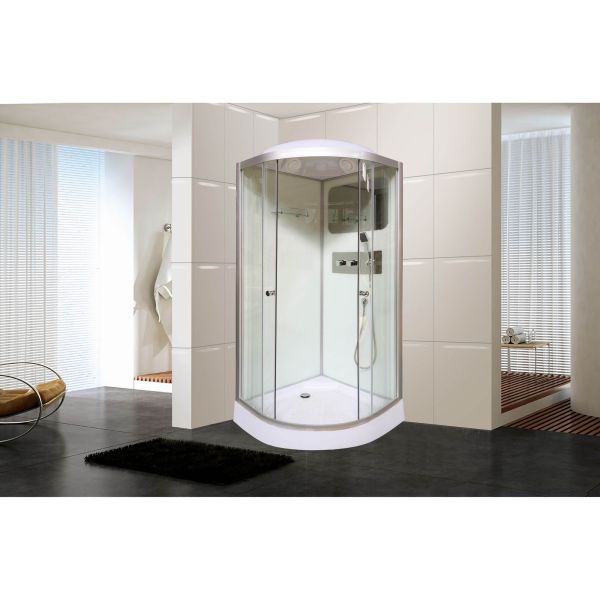 Душевая кабина Parly BMM95Размер: 95х95х215 смСветлая кабина впишется в любое оформление ванной комнаты. Кабину легко собрать своими силами благодаря понятной инструкции.Достоинства:Прозрачное закаленное стекло, толщиной 4 мм. Полотно устойчиво к случайным ударам. В случае биться стекло рассыпается на грани с тупыми концами, о которые невозможно поранить.Задние стенки из белого закаленного стекла, толщина 4 мм.Белый алюминиевый профиль не боится высокой влажности, устойчив к коррозии.Поддон: средний 26 см, полукруглый. Высота бортиков предупреждает попадание брызг на пол, при этом поддон легко перешагнут пожилые и люди с заболеваниями ног. Небольшое литое сиденье можно использовать в качестве дополнительного места хранения.Комплектация: полка, большое встроенное зеркало, верхний душ ТРОПИК, ручной душ, сифон.Особенности: без центрального столбаСборка без применения силикона. Конструкция душевой кабины обеспечивает слив воды внутрь поддона. Сам поддон по всему периметру оснащен водонепроницаемым бортиком высотой 2 см, который исключает перелив воды за пределы душевой зоны.Внимание! Производитель оставляет за собой право вносить изменения в конструкцию и комплектацию моделей без предварительного уведомления!