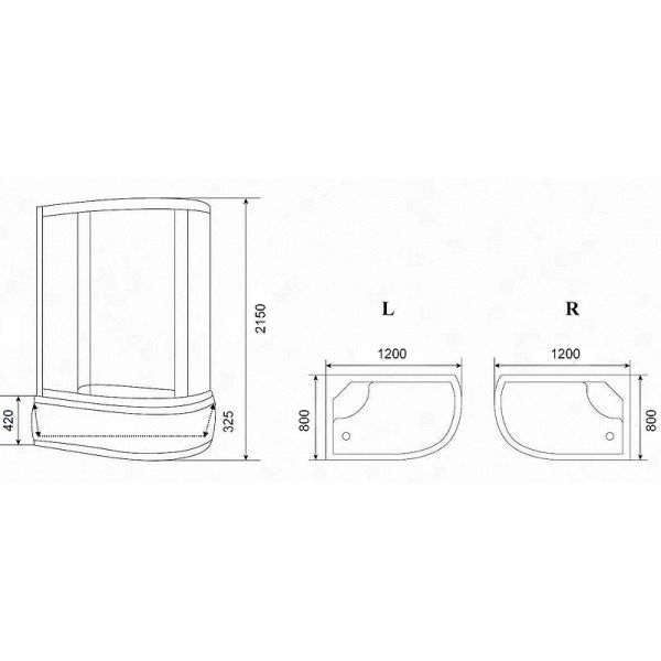 Душевая кабина Parly Bianco Эконом 120x80 R EB1221R.Характеристики:Форма: асимметричная.