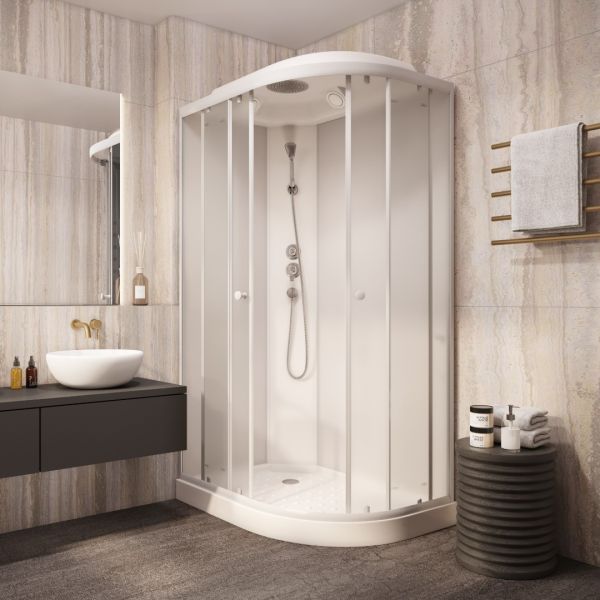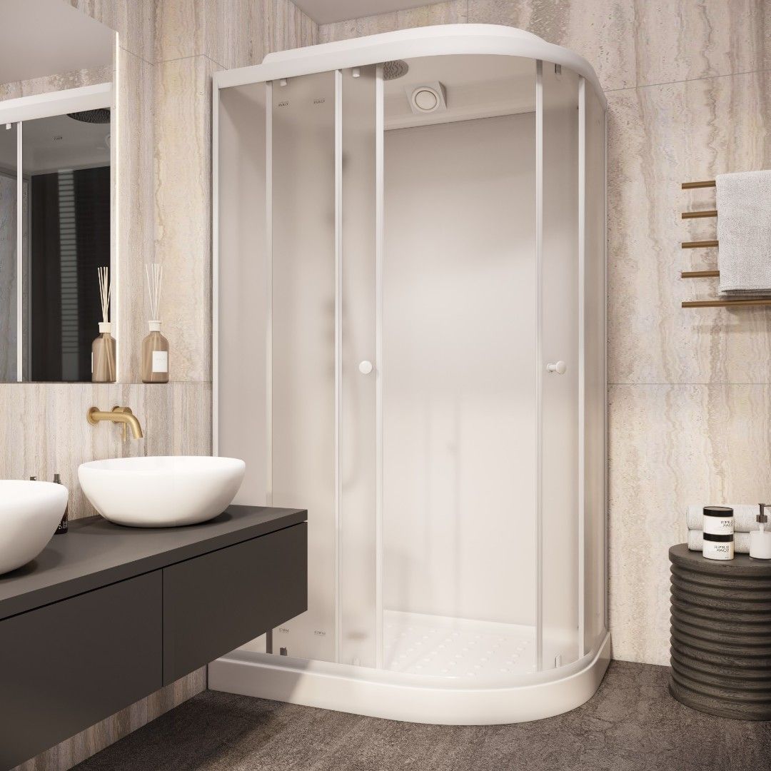 Кабина EB1231L душевая PARLY (9365)Размер: 120x80x210 смДостоинства:Стекло: закаленное, противоосколочное, ударопрочное, матовое, 4 мм.Стенки: закаленное, противоосколочное, ударопрочное, белое, 4 мм.Профиль: белый, алюминиевый.Центральная панель белая.Поддон: низкий, 10 см, асимметричный полукруглый. Материал - АБС пластик, армирован стекловолокном. Дополнительная ножка конструкции. Противоскользящее покрытие.Магнитные уплотнители двери под 45°.Силиконовые водоотсекатели.Белая одиночная ручка.Комплектация: смеситель, верхний душ ТРОПИК, ручной душ, сифон.Двери раздвижные на белых одиночных роликах. Нижние ролики на клипсе с механизмом отстегивания.Душевая кабина отлично подходит для дачи и квартиры.Преимущества модели: экономия пространства, безопасное стекло, плавное бесшумное открывание дверей, повышенная герметичность, легкий доступ к стеклу и профилю для очистки.