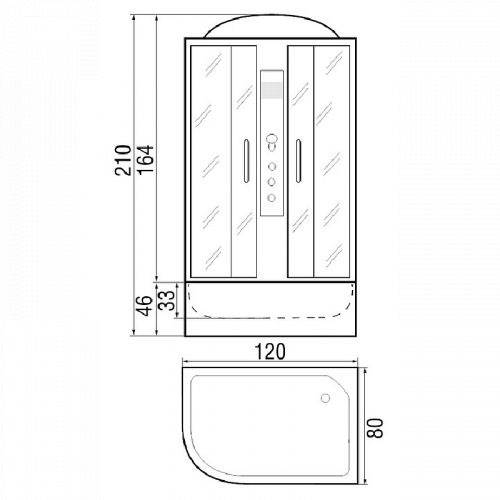 ~ крыша ~ верхний душ ~ вентиляц. отв-я (2шт) ~ цент. стойка ~ ручной душ 3-х позиц. ~ держатель д/лейки ~ полочка ~ смеситель с переключ. режимов ~ сиденье ~ поддон п/кр низ. со/съемн экр.(Н=26см) ~ сифон