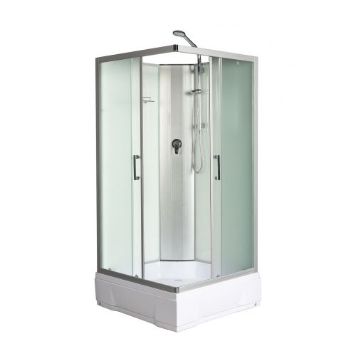 ~ без крыши ~ центр.стойка ~ штанга ~ ручной душ 3-х позиц. ~ смеситель ~3 г/м фарс. ~ полочка ~ зеркало ~ поддон кв.низ со съемн.экр. (Н=26см) ~ сифон Высота при одетом верхнем душе 215 см