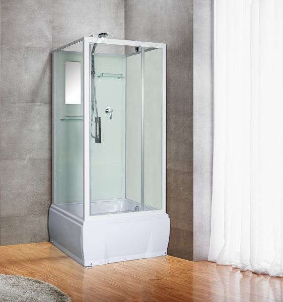 Стекло 6 мм. Задняя стенка - крашеное непрозрачное белое . Фронтальное стекло и боковые стекла прозрачные. Дверь стекло прозрачное.