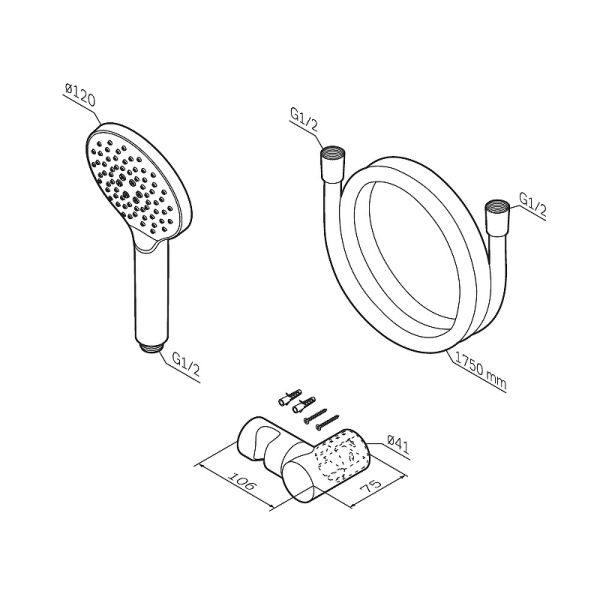 Душевая лейка Am.Pm Like F0118022Like F0118022, душевой набор: ручной душ 120мм, держатель ручного душа, душевой шланг, чёрный, шт.,функция Rub&Clean для легкой очистки душевых форсунок, функция Аir In для повышения эффективности и экономии воды, регулируемый держатель ручного душа, шарнирное соединение защищает душевой шланг от перекручивания.