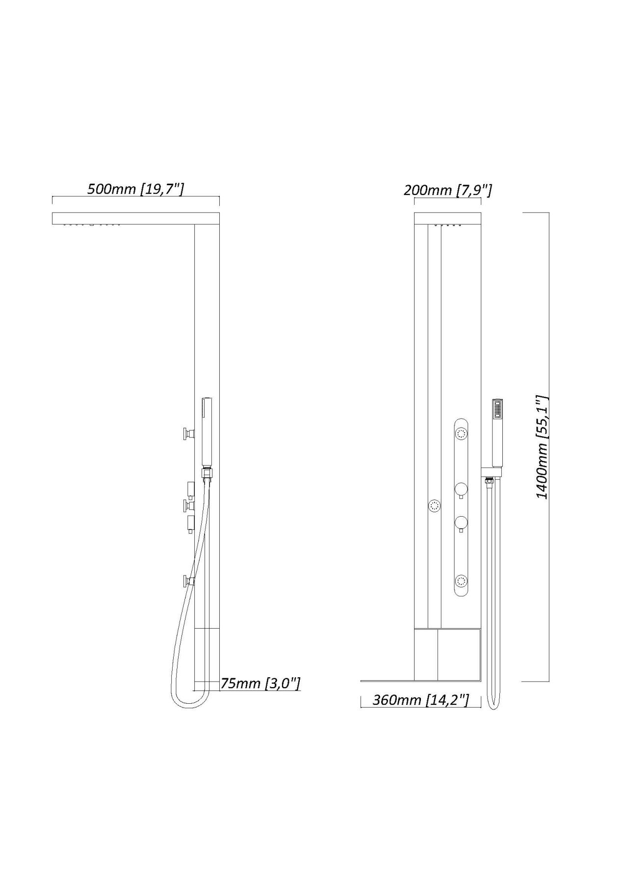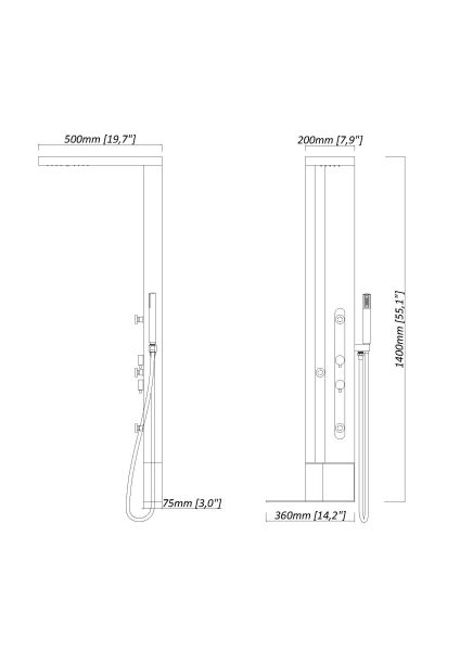 Душевая панель Black & White Gravity GR027 1400 х 200 мм купить