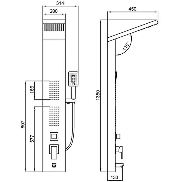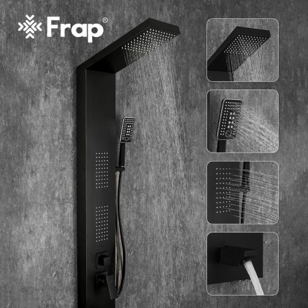 Душевая панель Frap F24005-6 с гидромассажем черный матовый купить