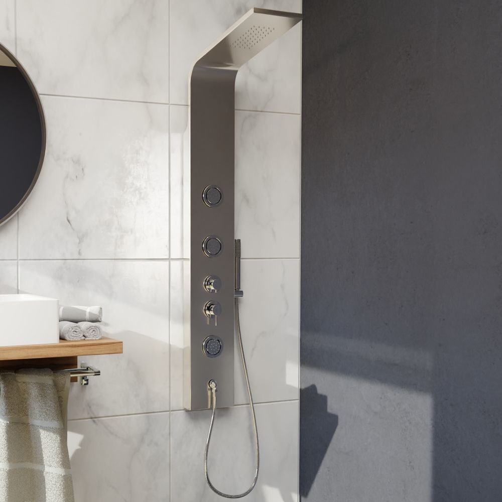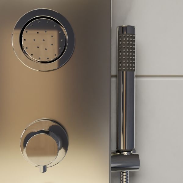 Представляем Вашему вниманию душевую стойку из коллекции Shower Panels.Каждая деталь этой душевой стойки составляет общее представление о стиле и лаконичности, а благодаря компактному размещение-разгружает общее пространство.Сегодня такое решение является дополнением к современному дизайну.Помимо визуальной составляющей душевая стойка выполнена по наивысшим стандартам качества.Такое расположение позволяло максимально разгрузить пространство санузлов и выделить для душа совсем небольшой уголок.