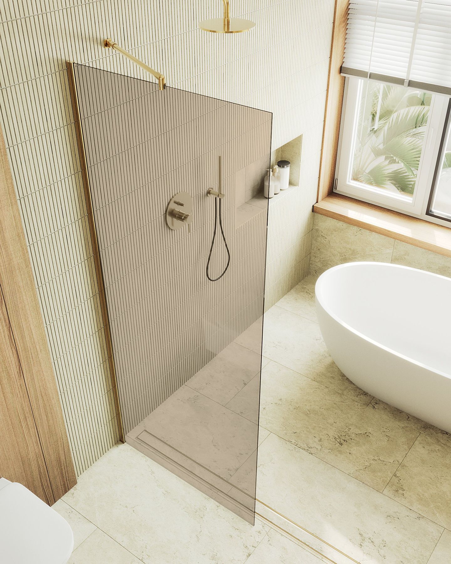 Стеклянная душевая перегородка в профиле - стильный и функциональный элемент, предназначенный для разделения пространства в ванной комнате. Перегородка изготовлена из закаленного стекла, обеспечивающего безопасность и долговечность. Профиль из анодированного аллюминия добавляет конструкции прочности и устойчивости. Благодаря разнообразию размеров и дизайнов, стеклянная душевая перегородка идеально впишется в любой интерьер. Закаленное стекло , цвет бронза , толщина 8 мм , 1950*790-1 шт.