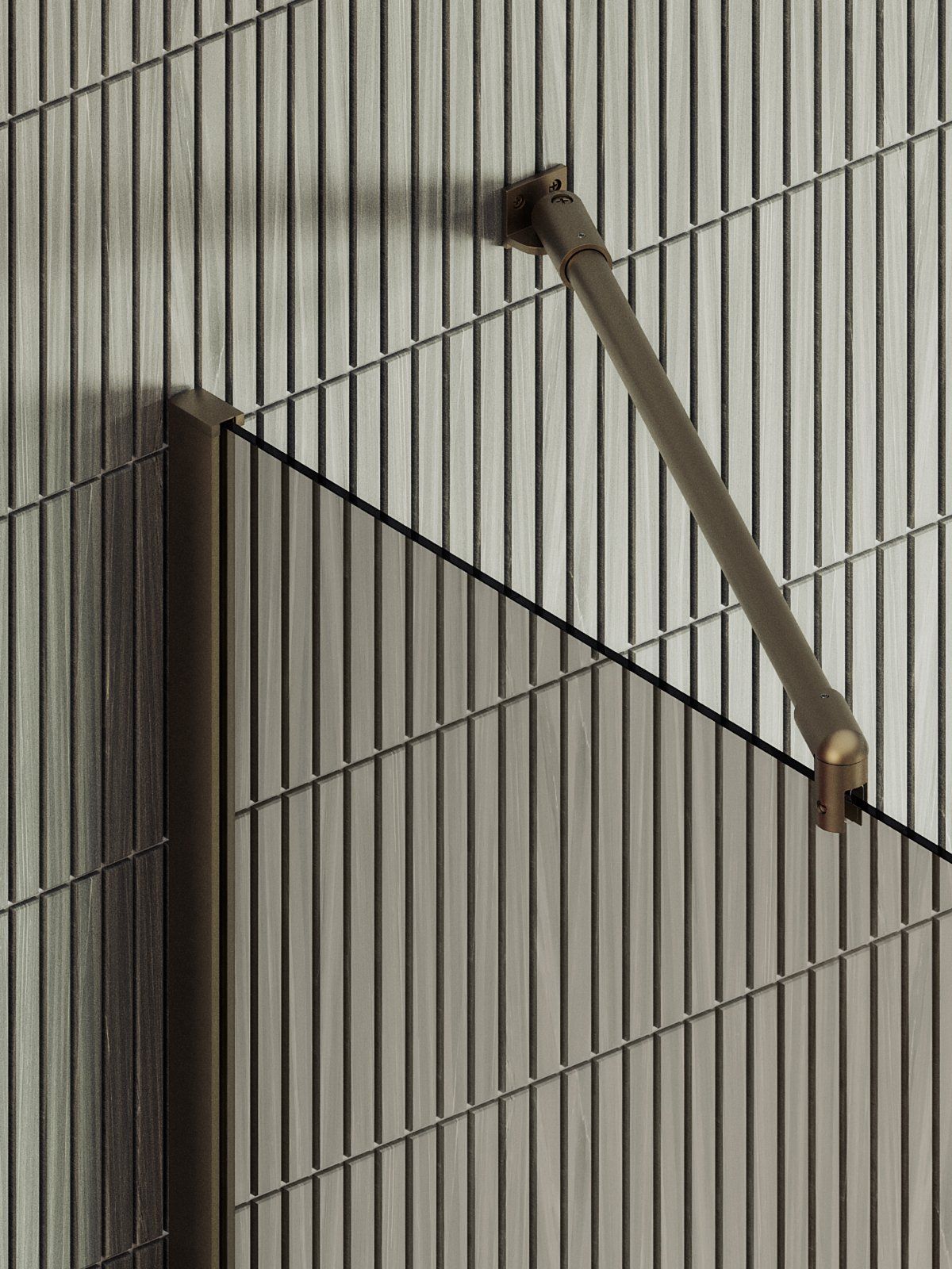 Душевая перегородка в профиле с полотенцесушителем представляет собой компактное и функциональное решение для разделения пространства в ванной комнате . Она изготовлена из закаленного стекла,анодированного алюминиевого профиля, что обеспечивает прочность и долговечность конструкции. Закаленное стекло , цвет бронза , толщина 8 мм , 1950*790-1 шт.